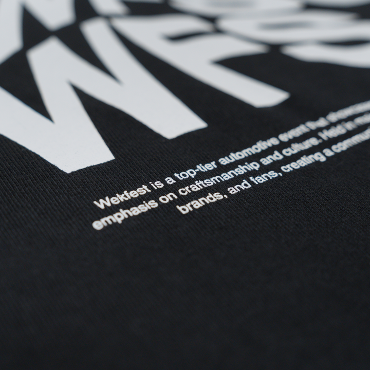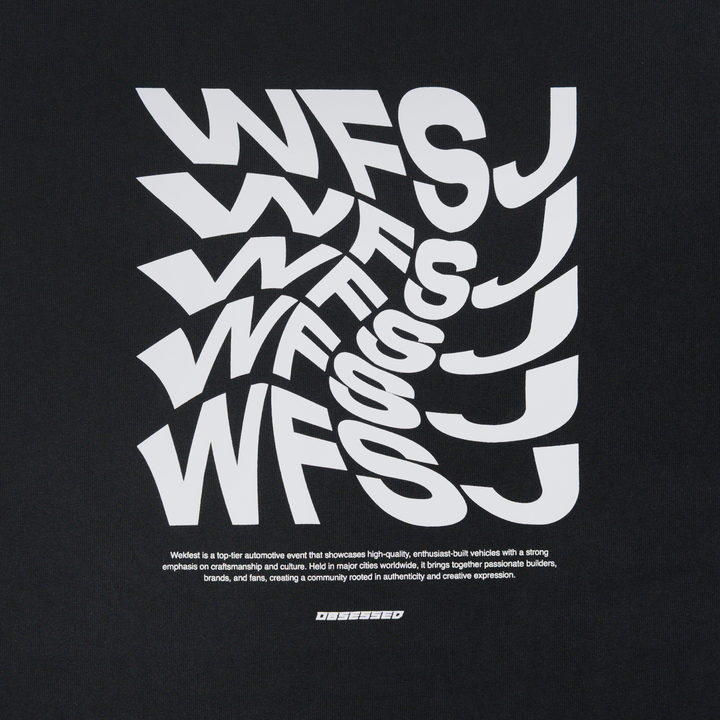 This tee features a distorted Wekfest San Jose graphic on a faded black base, designed with an oversized boxy fit, dropped shoulders, and heavyweight cotton for a bold yet comfortable statement.
